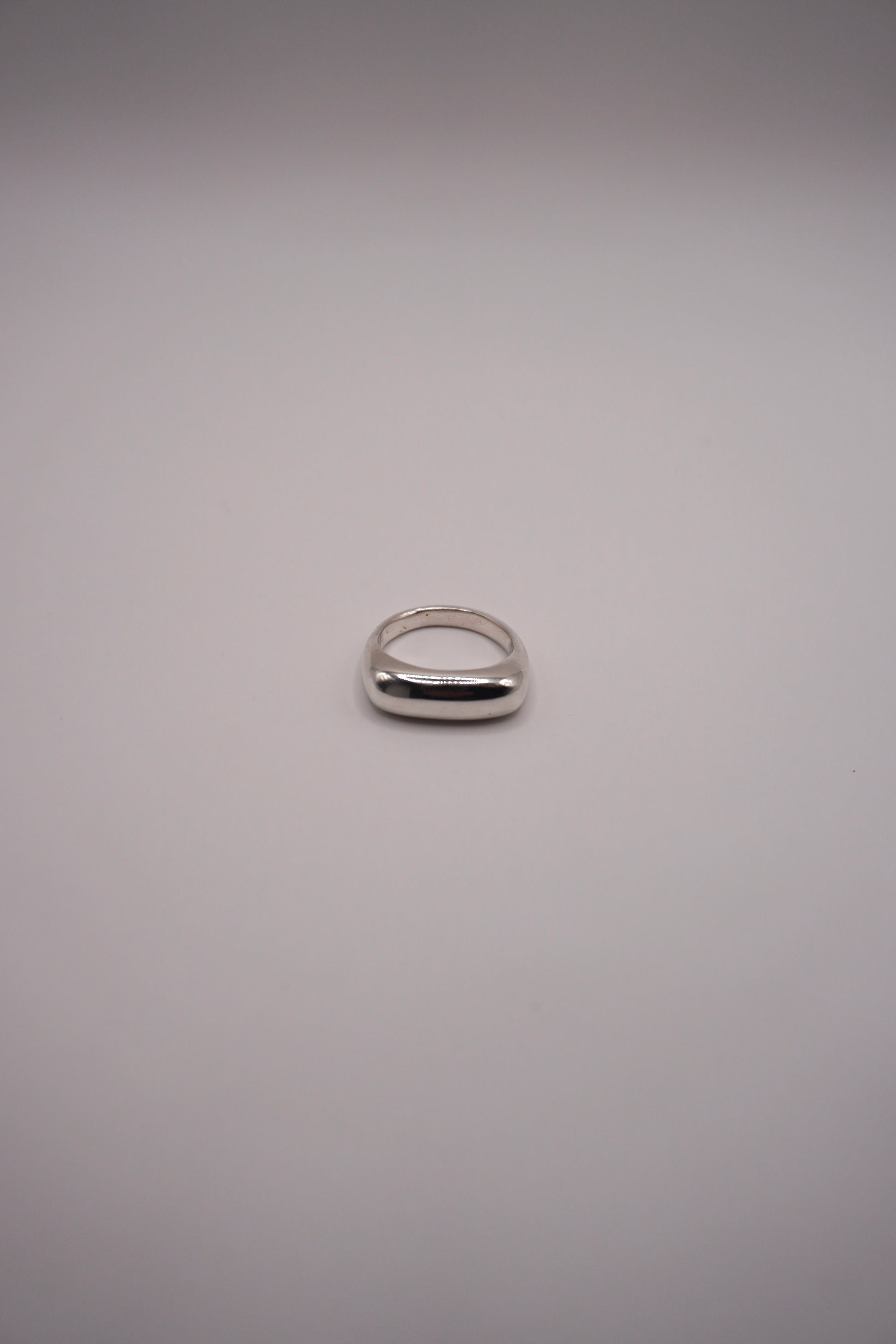 It is a square ring with softened corners for a better fit and feel against the skin.
